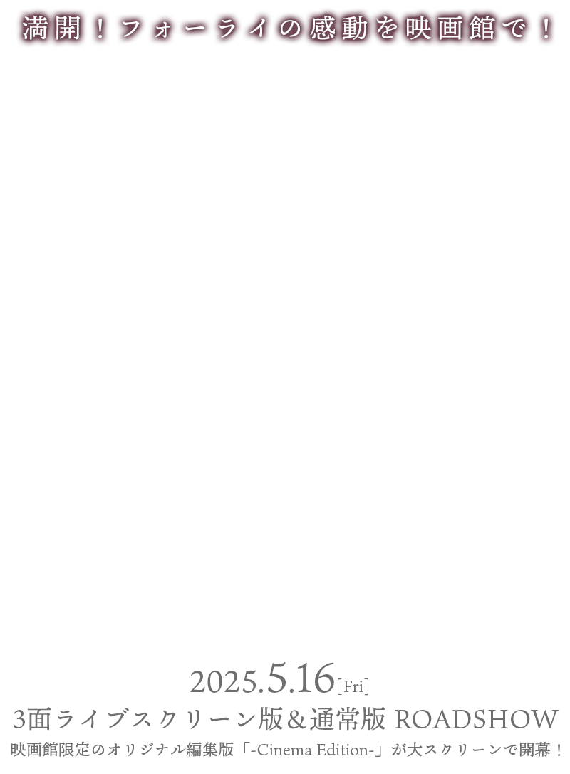 約4年ぶりに開催され、「エーステ」に登場する総勢30名が集結した「Four Seasons LIVE」。記念すべき豪華絢爛のLIVE公演が、映画館限定のオリジナル編集版として、大スクリーンで開幕!